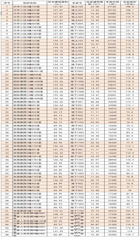 興華小區(qū)、國際景園、西周嘉園、萬家人利共計68套住宅公開拍賣