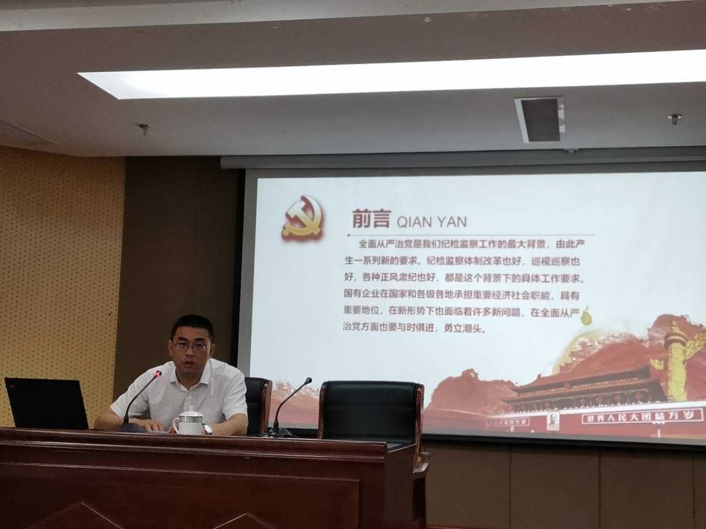 陳玉橋組長圍繞國企全面從嚴治黨、貫徹中央八項規(guī)定精神、落實“兩個責任”、制度建設(shè)等方面內(nèi)容,深入分析了當前國有企業(yè)從嚴治黨的新形勢新問題,為黨員干部上了一堂發(fā)人深思的廉政教育課。一個多小時的講座,內(nèi)容豐富、分析透徹,有理論、有案例、有數(shù)據(jù),對推進集團全面從嚴治黨,促進集團干部職工加強自身作風(fēng)建設(shè)、嚴格遵守廉潔自律各項規(guī)定具有很好的警醒和教育作用。