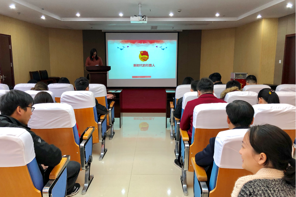 一、開展集中學習。由團委副書記胡瀟同志給在座團員青年講黨的“十九大”精神和《習近平:新時代的引路人》長篇通訊稿。